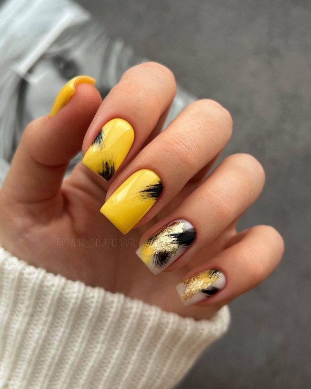 19-summer-yellow-square-nails-with-black-and-gold-design-640×800-1